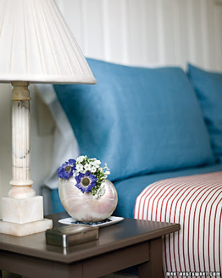 A wide-mouthed, spiral nautilus shell can double as a pearlescent vase for bedroom bouquets